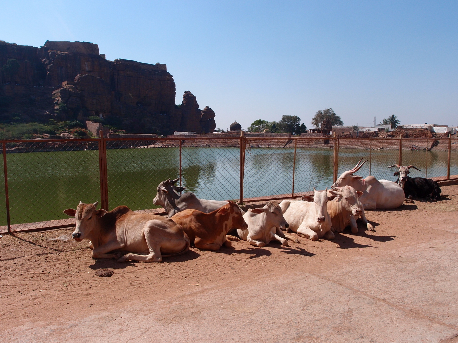 Cave temple view, over tank Published January 17, 2012 at 1600 × 1200 in Badami now! How i’d have liked to remove the barrier for them